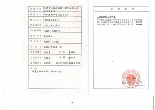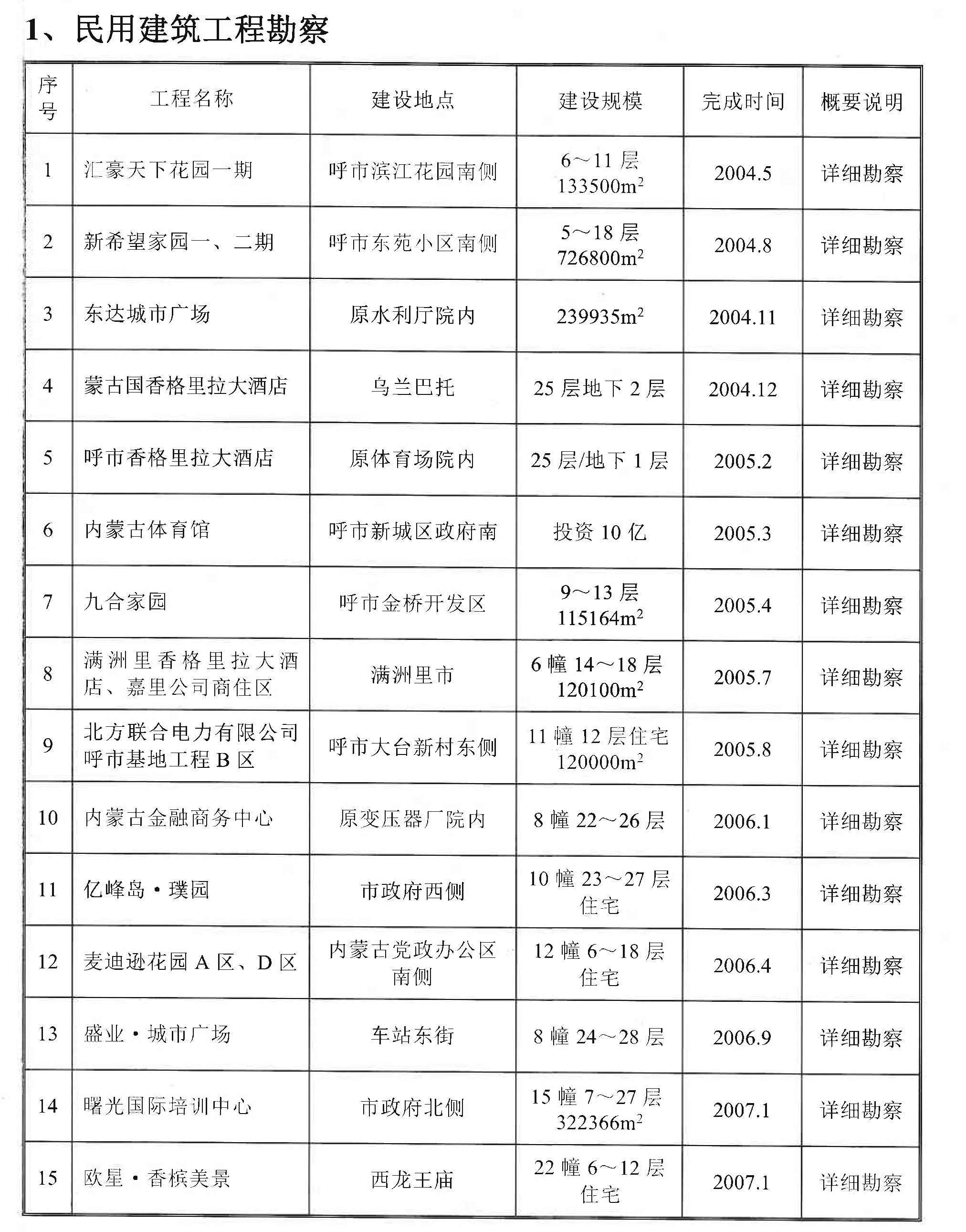 • 內(nèi)蒙古建筑勘察設(shè)計研究院勘測有限責任公司,是全國首家完成 轉(zhuǎn)企建制的省級建筑勘察設(shè)計單位。公司前身為內(nèi)蒙古建筑勘察 設(shè)計研究院勘測分院, 成立于1954年 ,經(jīng)過六十多年的發(fā)展, 現(xiàn)已成為全區(qū)技術(shù)力量雄厚、專業(yè)設(shè)置齊全的集巖土工程勘察 、 設(shè)計、治理、檢測、監(jiān)理、咨詢、水文地質(zhì)勘查、工程測量、科 研為一體的綜合性企業(yè) ... ... [查看詳情]